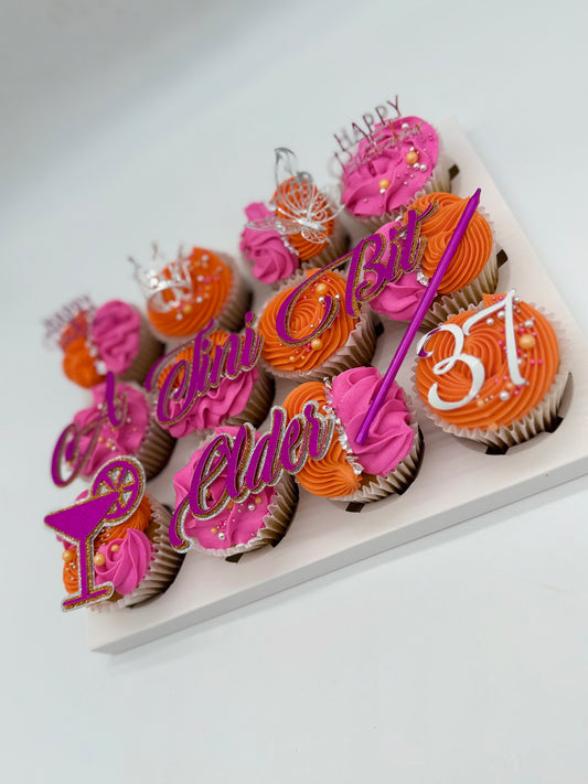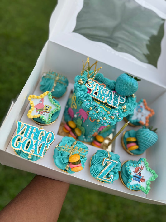 This box includes 7 Mini Cakes, and are 4 inches, 2 layers. Feeds up to 8 people.